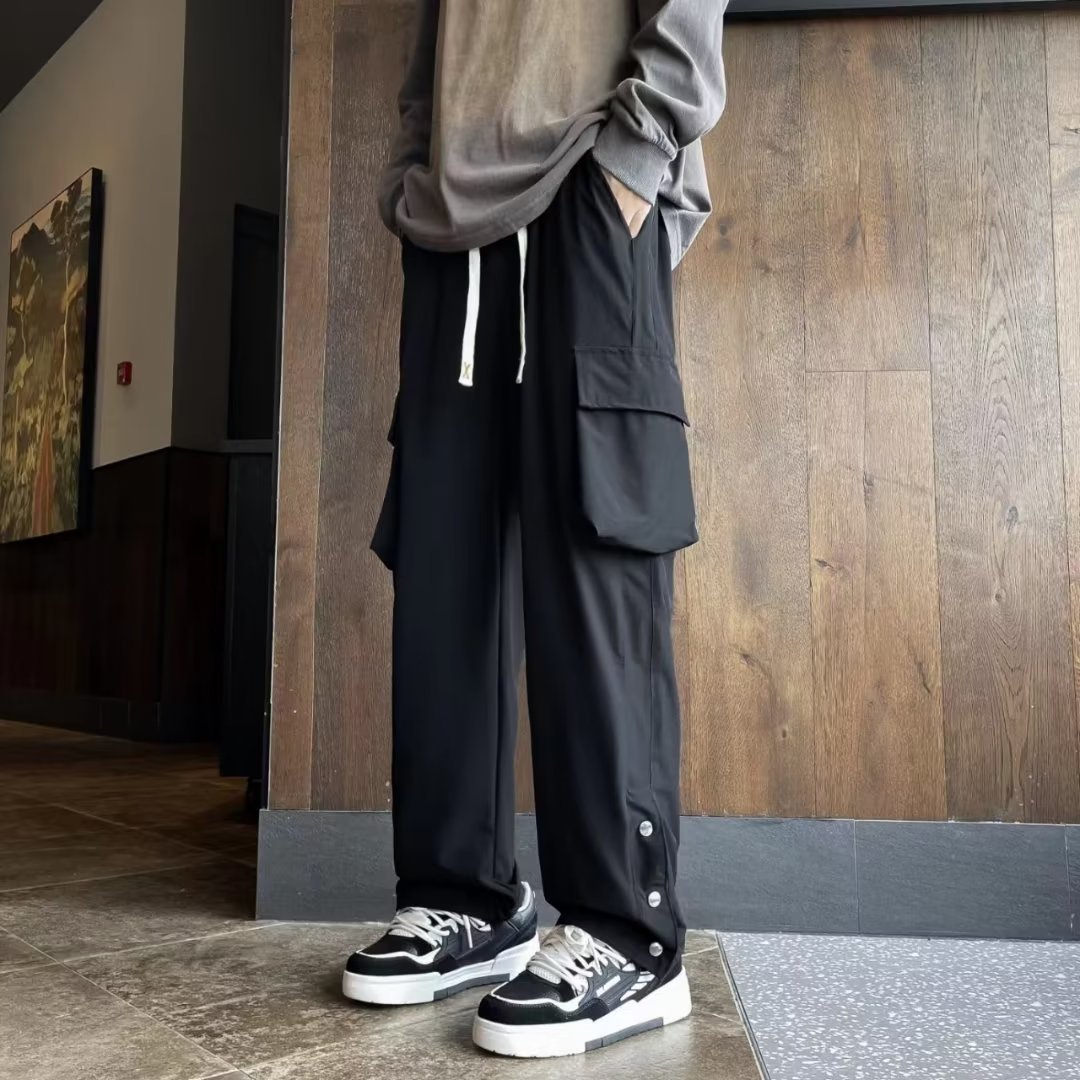 秋の日系ファッションins直筒工装ズボン男港風街頭多ポケットボタンカジュアルズボン