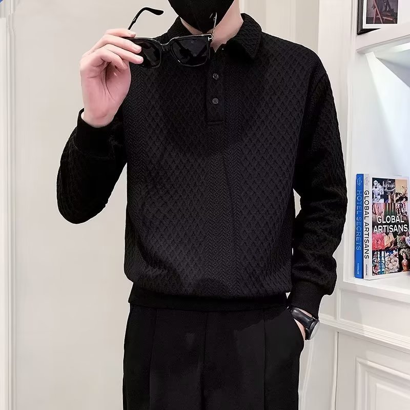 秋のpoloシャツの長袖tシャツの男性はゆったりしています。