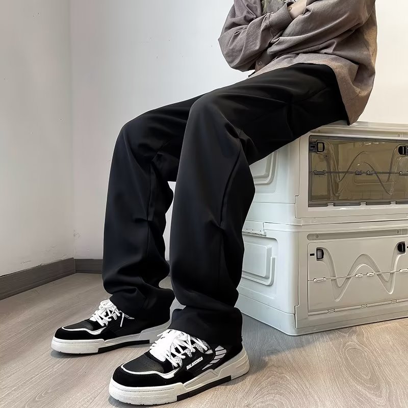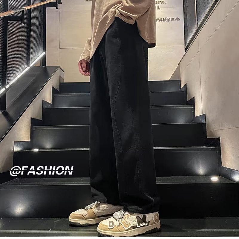 純粋な黒いジーパンの男性のタイプのアメリカの復古の高い街のvibe風のズボンの垂れ下がった感の弾力性の修身の潮のブランドのストレートなズボン