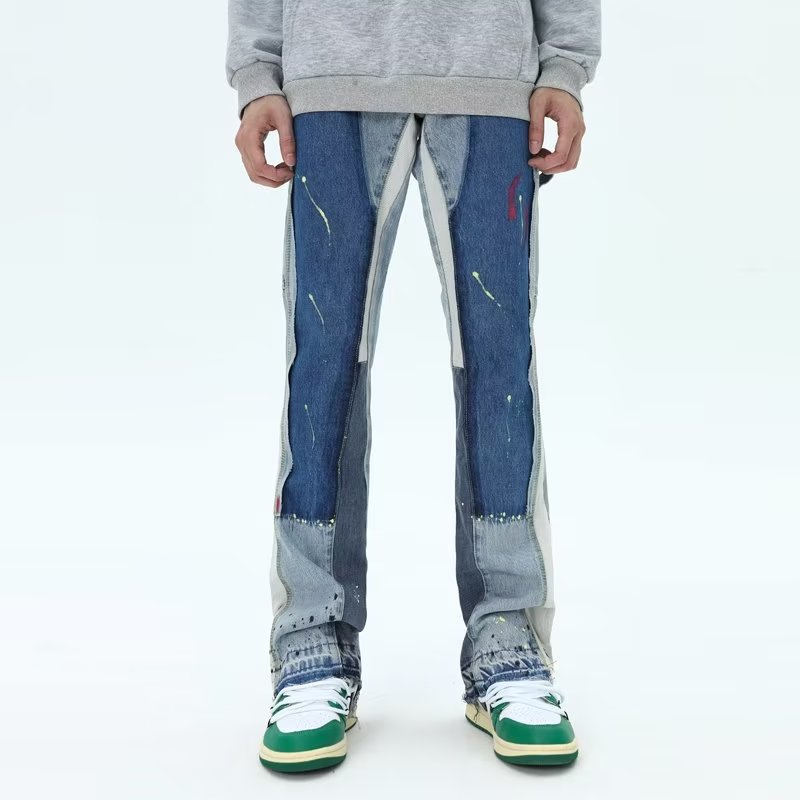 高街風重工は水を洗って古い墨をかけて色を合わせてラッパのズボンの亜の潮流の個性の小さい大衆がジーパンを積みます。