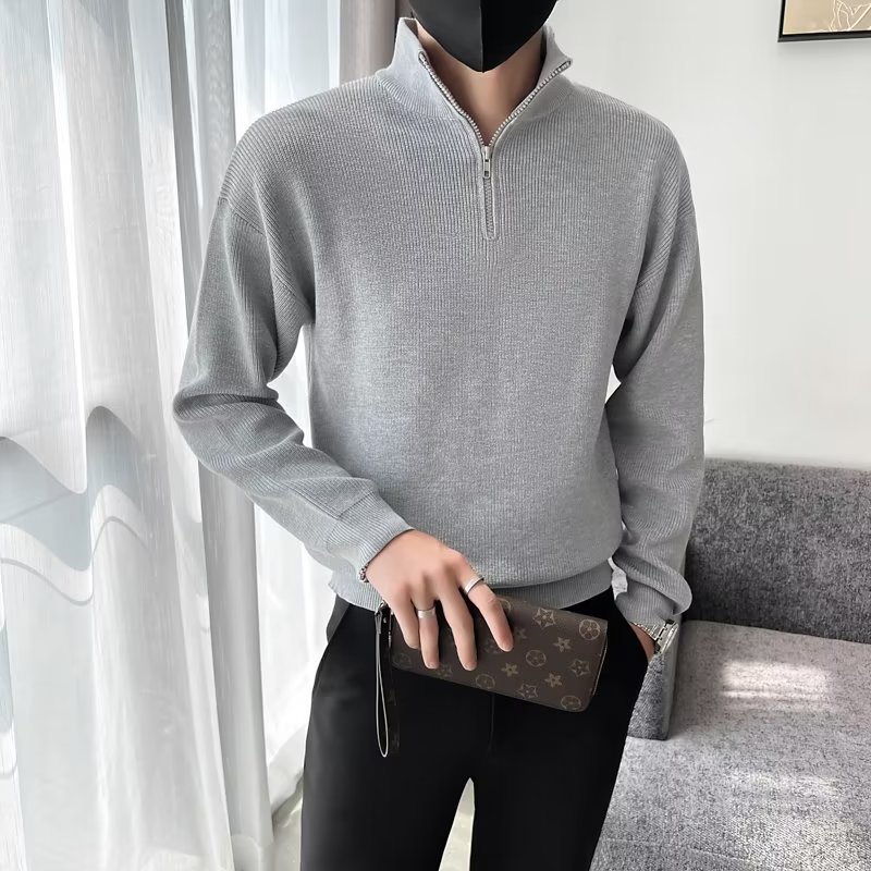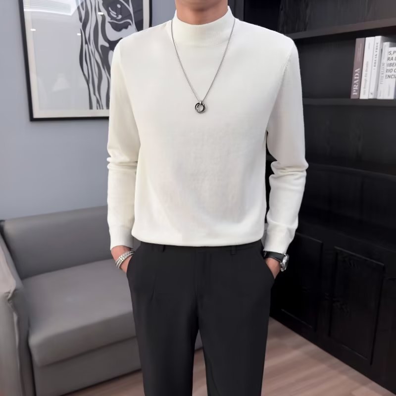 立襟セーター男性秋高級ファッション男性セーター底シャツ純色半ジッパーコートニット
