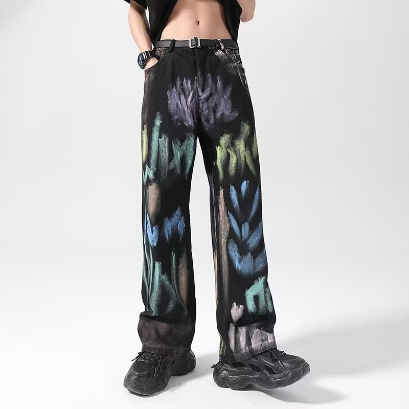 手描き落書きジーンズ男夏の新型アメリカンごろつきハンサムな街のカップルのズボン