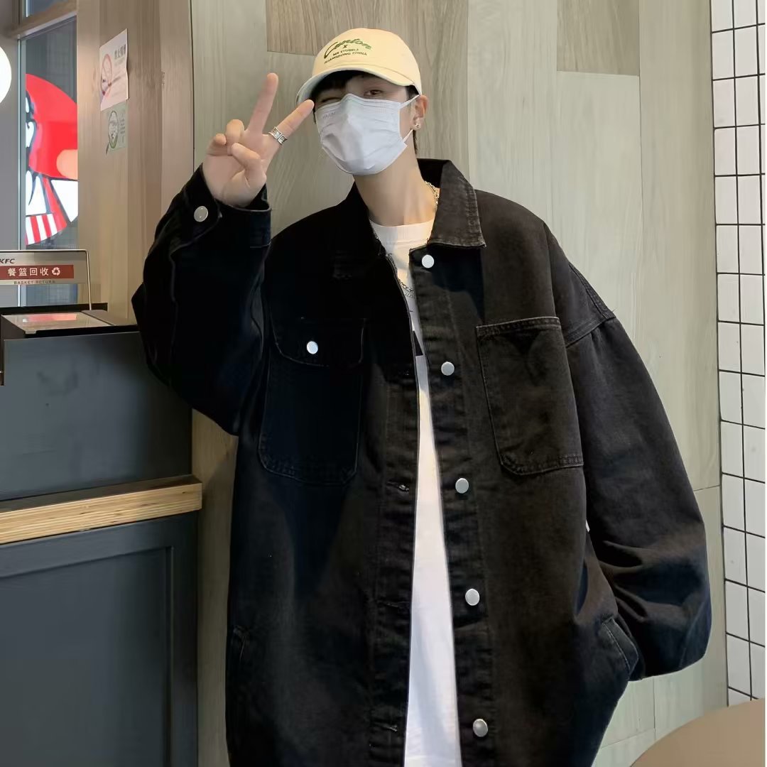 純色の襟をめくってinsの新型の男性の長袖の春と秋の外はファッションの青春の流行のジャケットの標準の気質の原宿の潮を着ます。