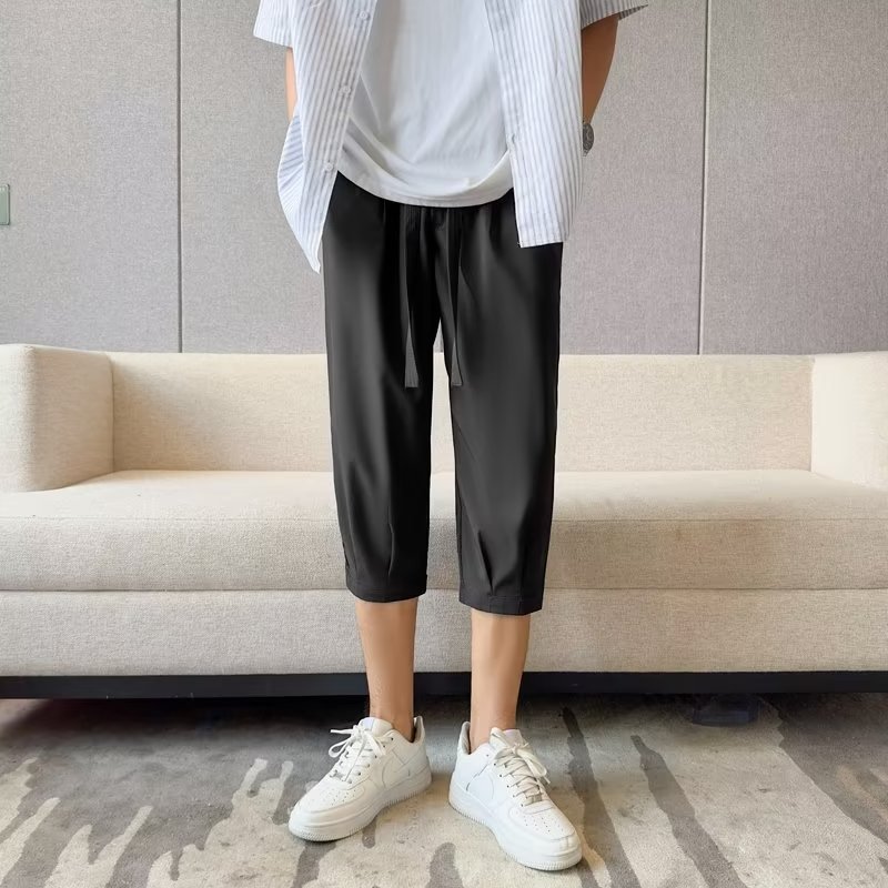 7分ズボン男子2023夏の薄いストレートのペンダント感がゆるい7分ズボン男性の外着のひもカジュアルズボン