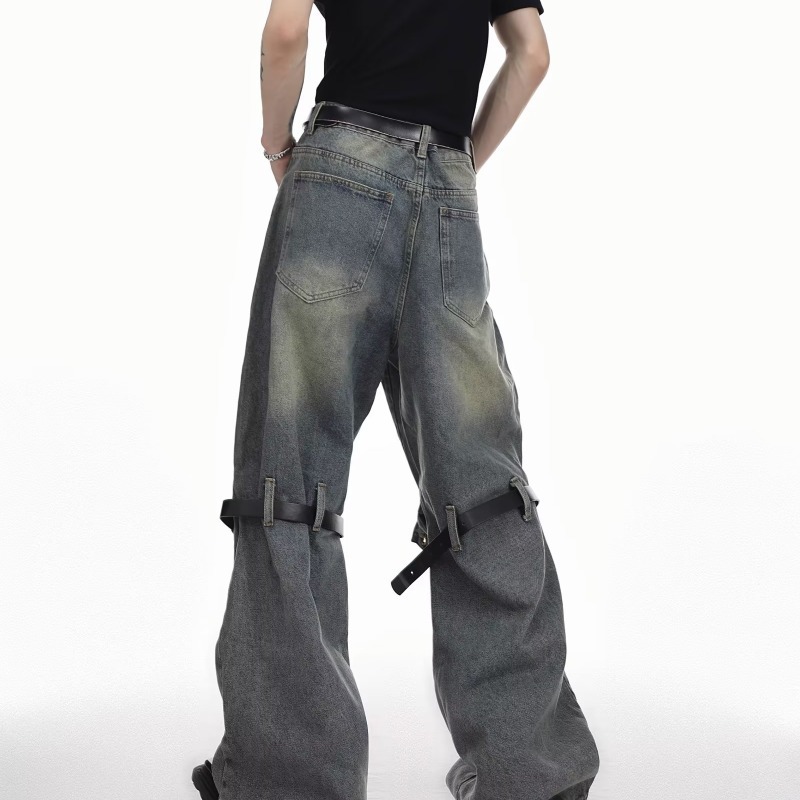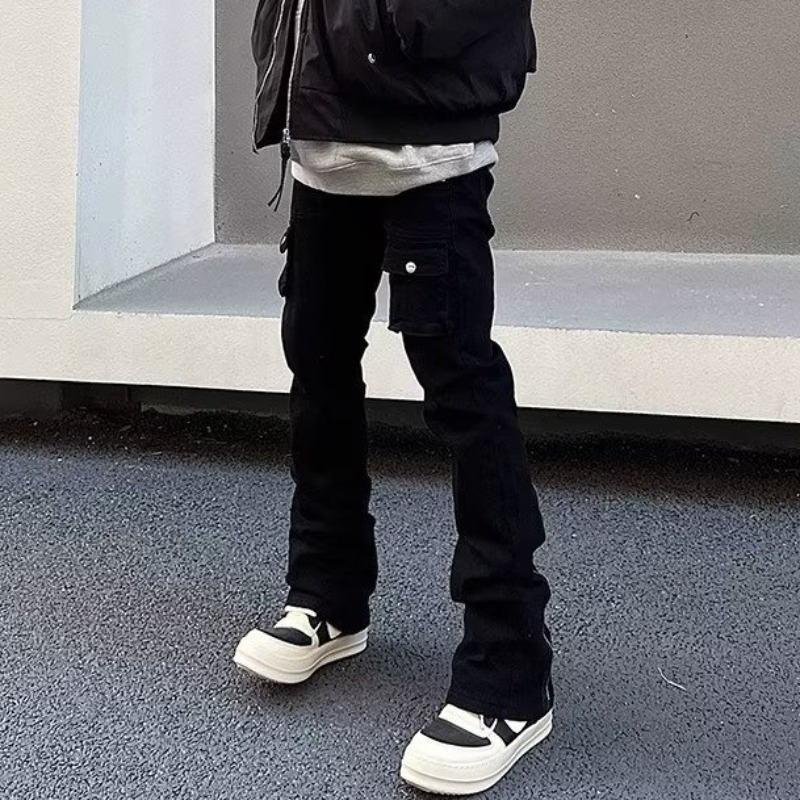 アメリカ式高街vibeジッパーオープンフォーク工装カジュアルジーンズ男性ins潮牌直筒マイクロラッパ痩せズボン