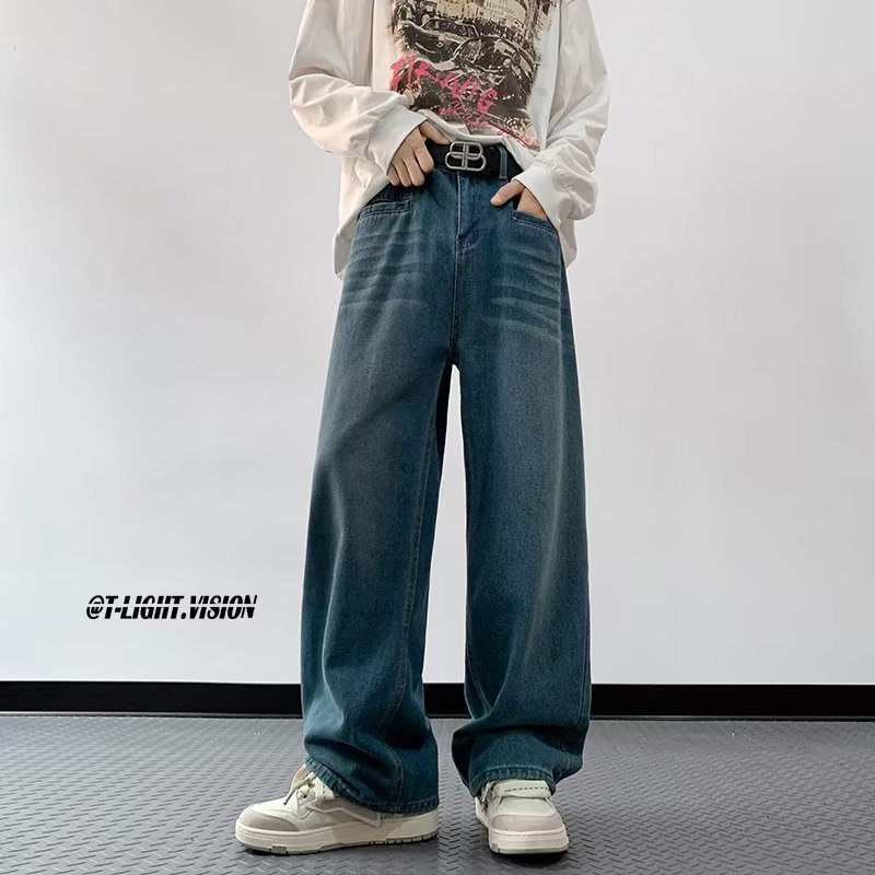 レトロな水洗いのストレートジーンズの男性の夏の韓国版insの流行はゆったりしています。