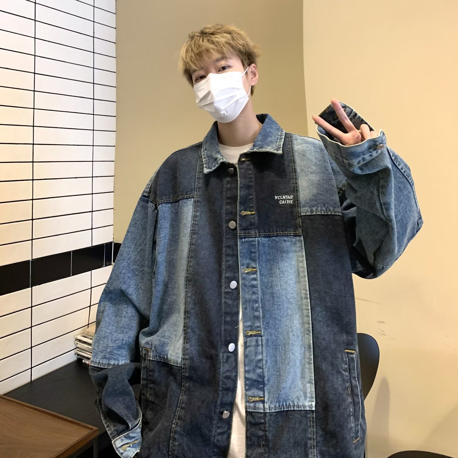 色をつなぎ合わせてアメリカのレトロなデニムのコートの男性の高い街のデザイン感のファッションのブランドのゆったりしているカジュアルな襟の春秋ジャケット