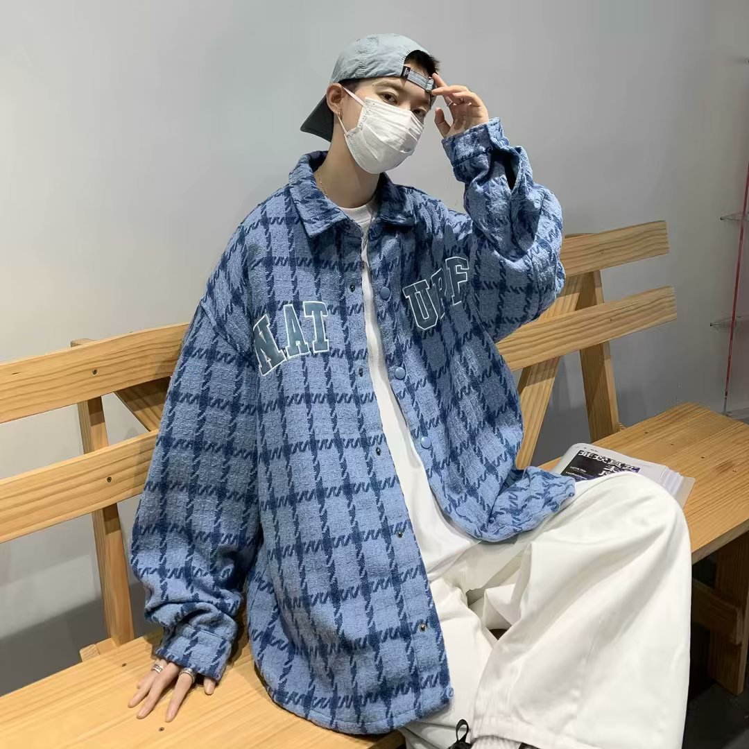 小香風格子シャツ男秋港風レトロゆるいごろつきかっこいい長袖シャツ韓国版insトレンドコート