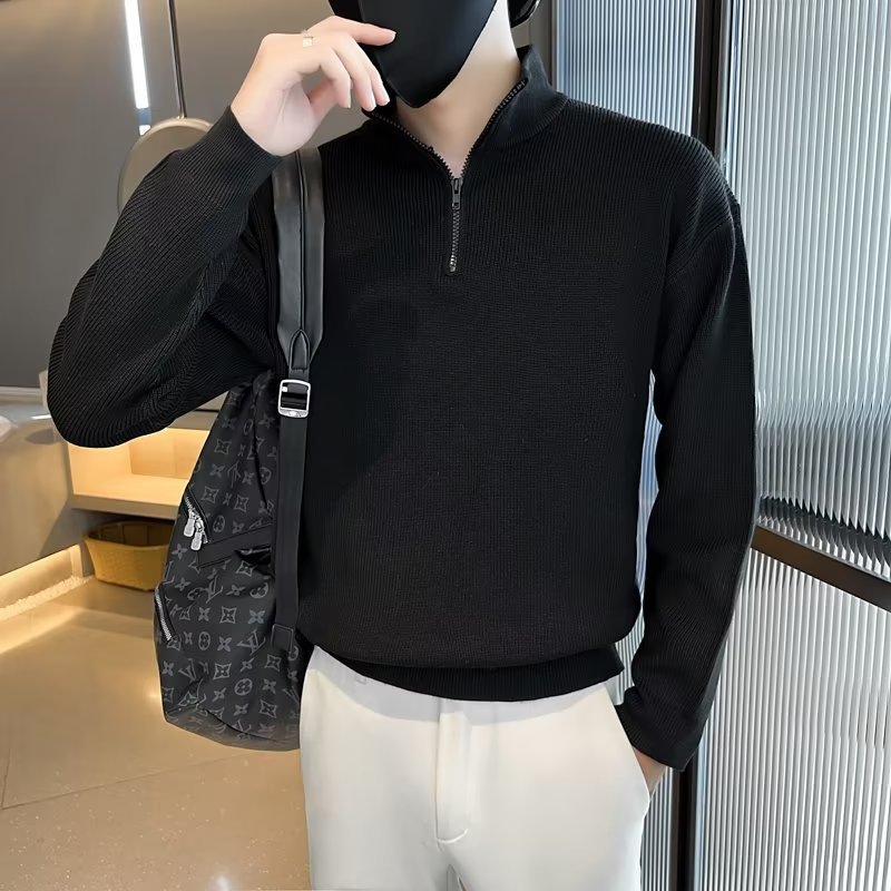 高襟セーター男性立襟ファッション男性用ニットコート純色秋冬半ファスナー毛糸ベースシャツ