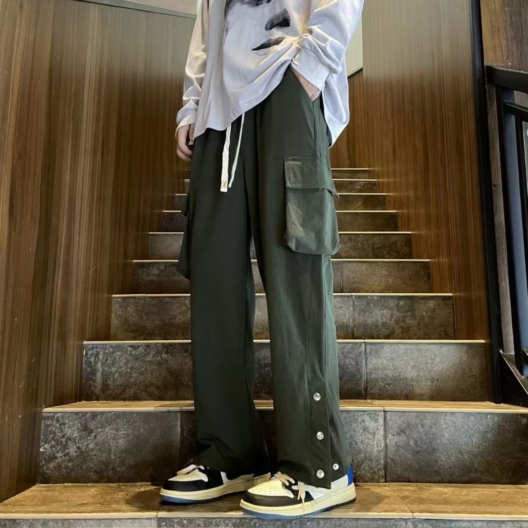 夏のアメリカ式ins高街工装ズボン男小衆デザイン感多ポケットボタン暗黒系ストレートカジュアルパンツ