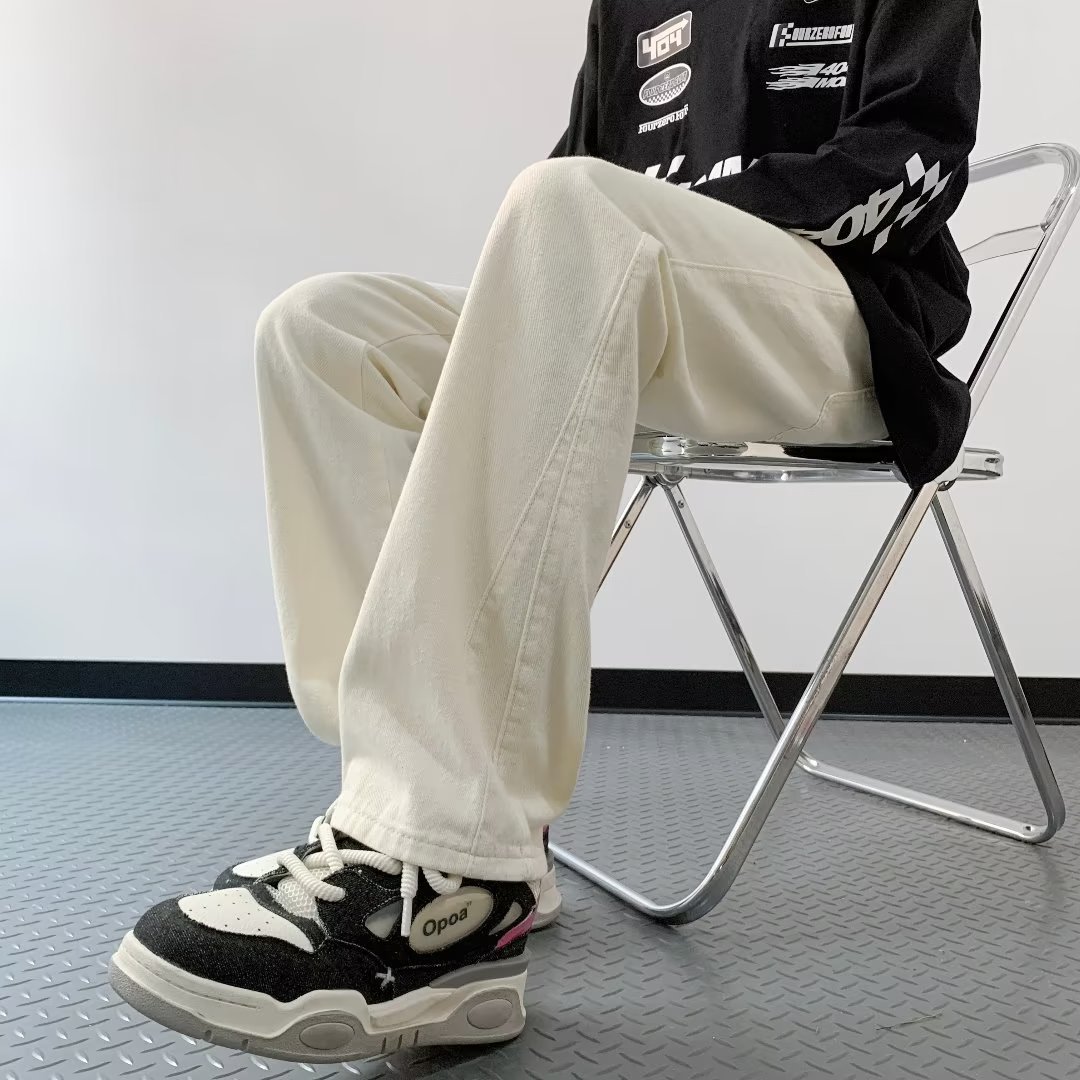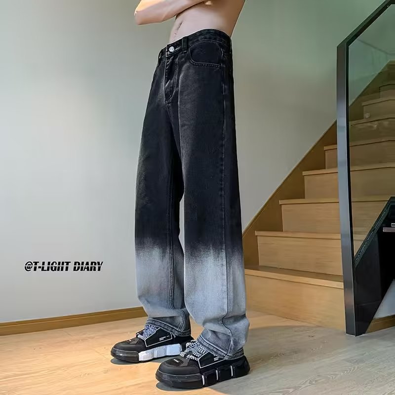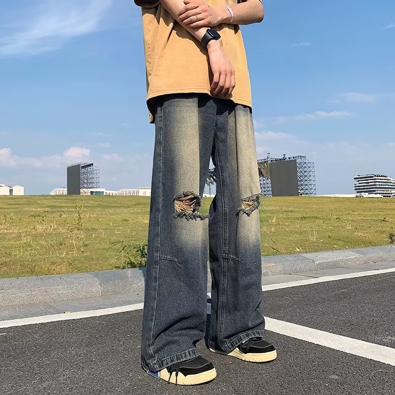 アメリカ式cleanfit高街vibe水洗いして、古いゆるい穴を割ったストレートな国潮男カジュアルなワイドジーンズを作る