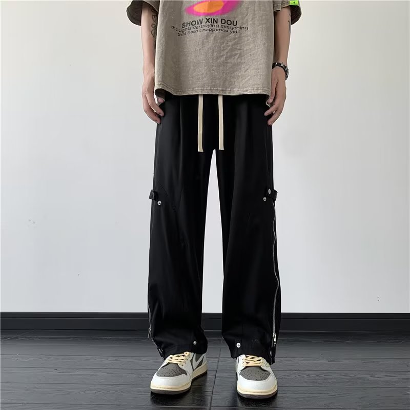 カジュアルなズボンの男子学生の夏のゆったりしたファッションの高い街の運動の広い足のズボンの薄いタイプのファッションのブランドの重いポンドのまっすぐな筒の工装のズボン