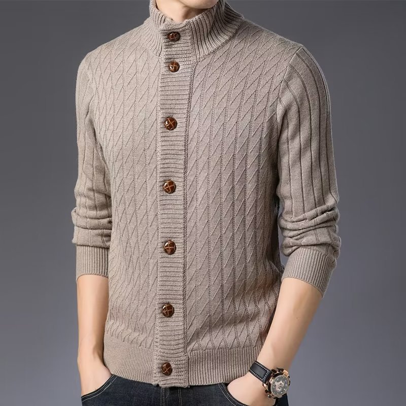 ニットカーディガン男性ジャケット半高襟セーター秋冬モデルジャカードセーター中襟中年男性セーター