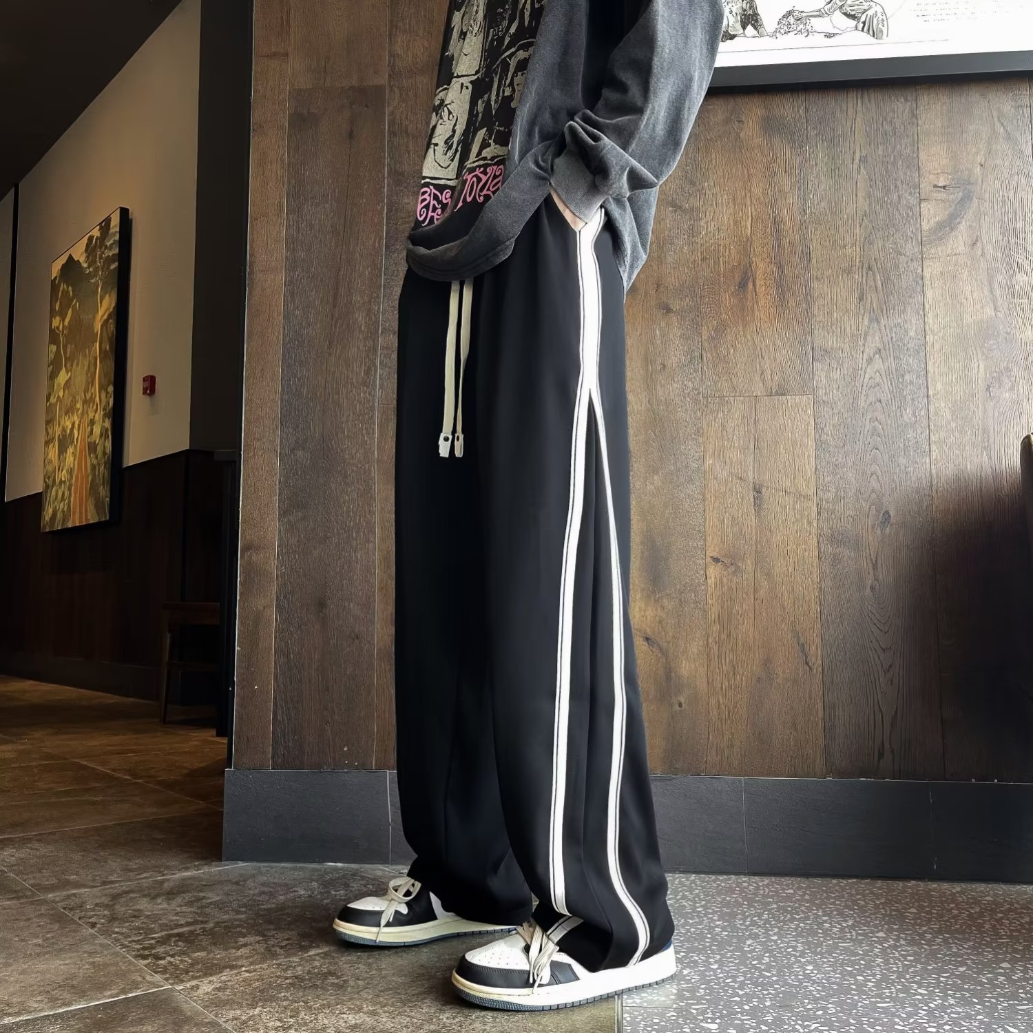 スポーツのサイドストライプのワイドパンツの女性の秋の薄いタイプの2023新型の小さいズボンの秋の狭い版のストレートの感じ