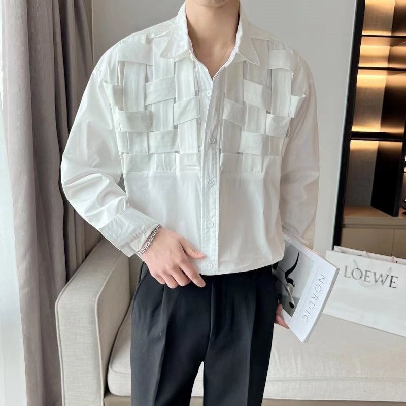 春と秋のデザイン感のある男性の長袖シャツの新しいファッションのごろつきのハンサムでゆったりした高級感のあるシャツのコート