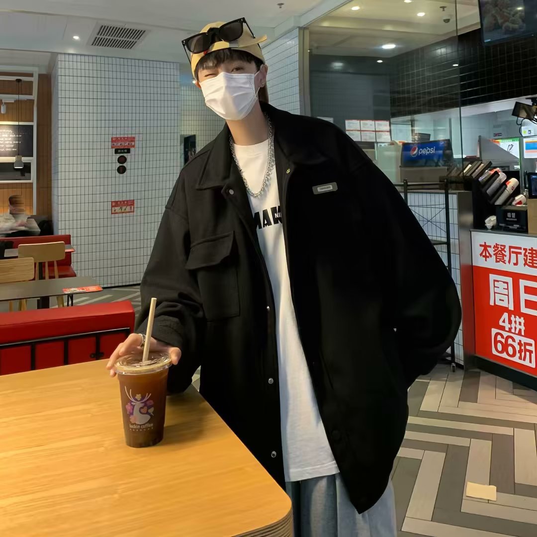 アメリカのレトロなスエードのコートの男性の春と秋のゆったりした襟のジャケットには、ファッションブランドのinsカップルの上着があります。