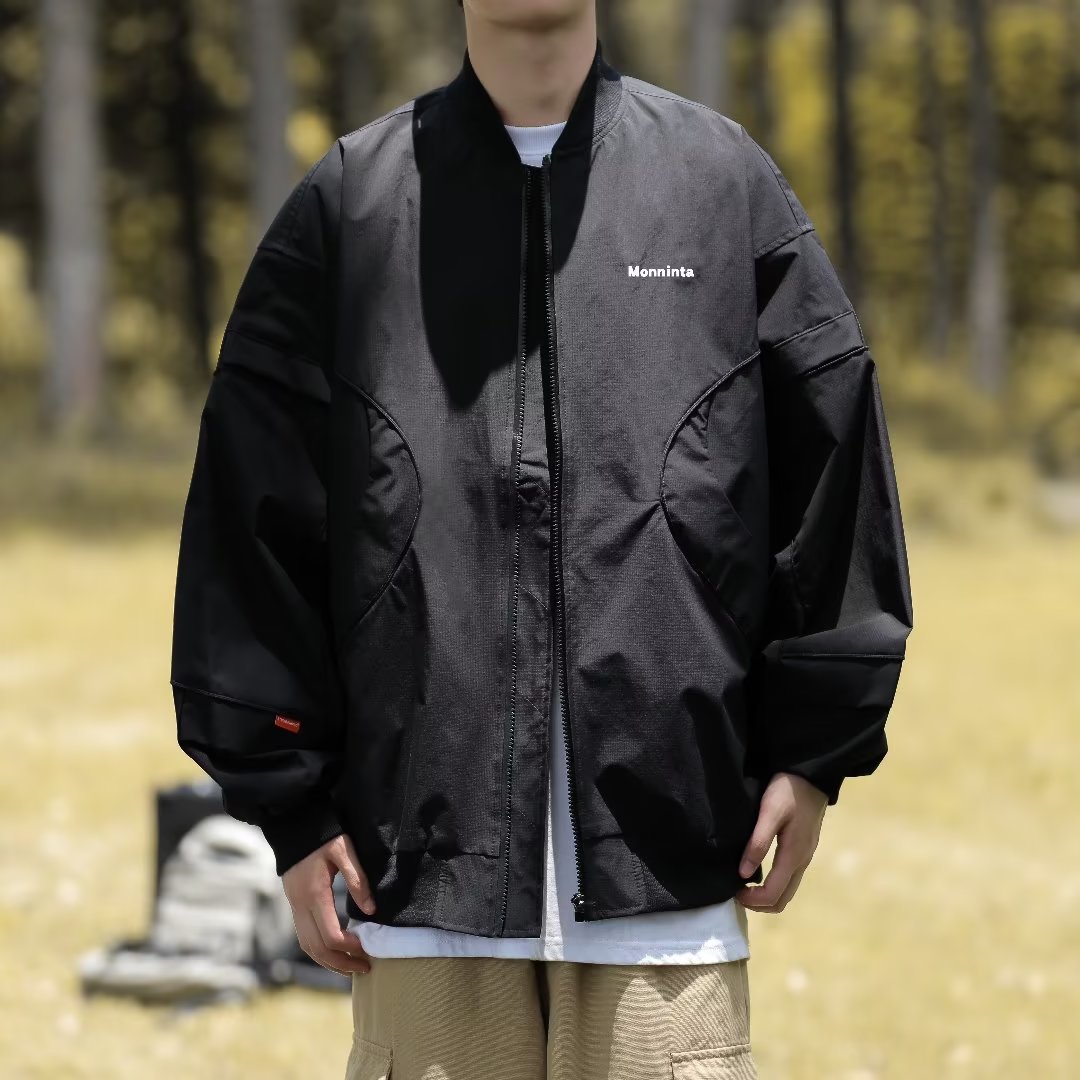 野球服コート男性秋アメリカレトロ高級感しわ発泡大衆デザイン感ゆるいカジュアルジャケット