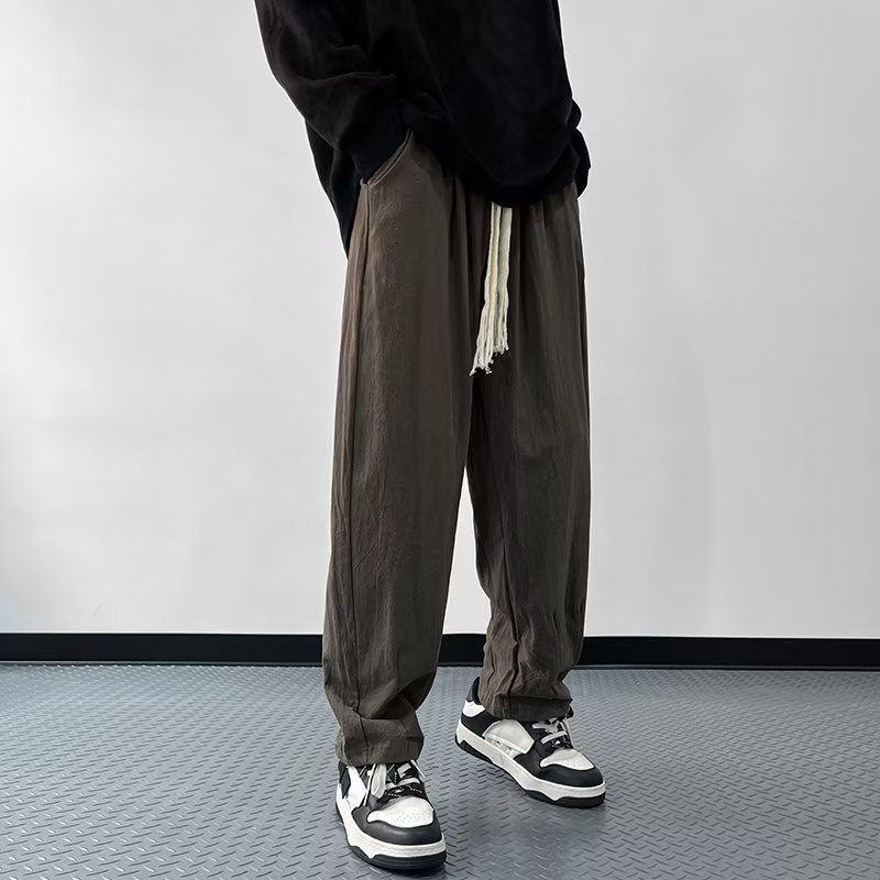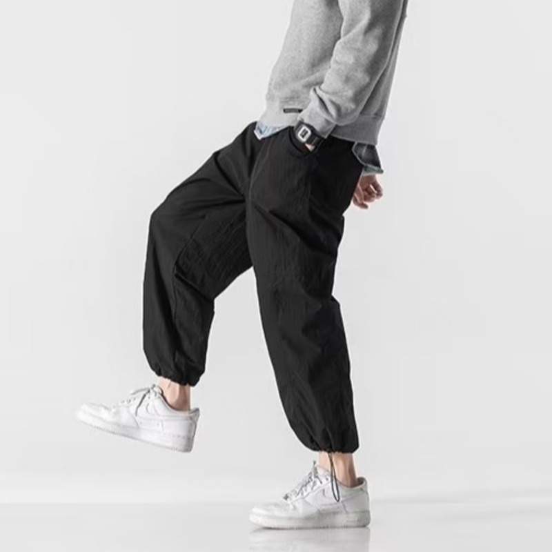 日本系復古機能防水テーパーパンツ男性ゆったりとした純色の足首のズボンのファッションはひもを引きます。
