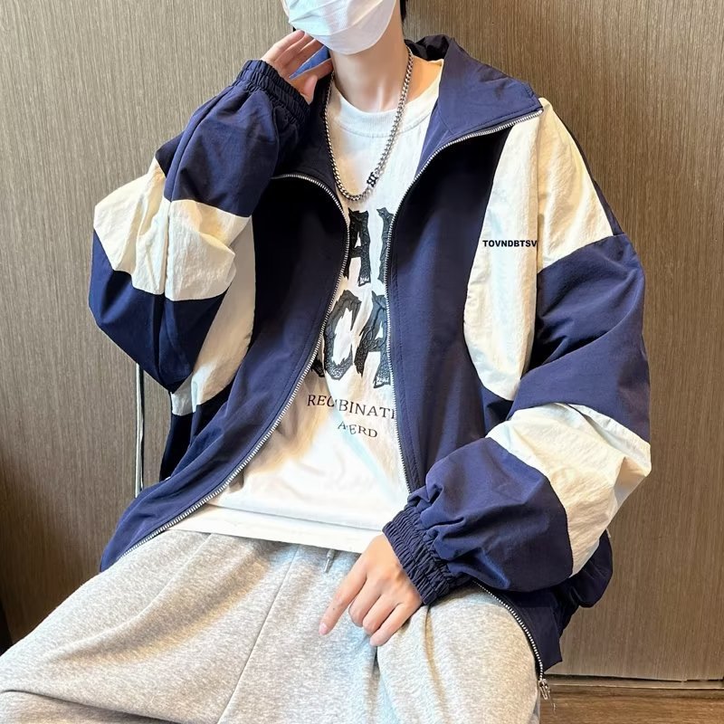 衝突色立襟野球服男性モデル春秋香港風ゆるいカップルコート潮牌百合レジャースポーツジャケット