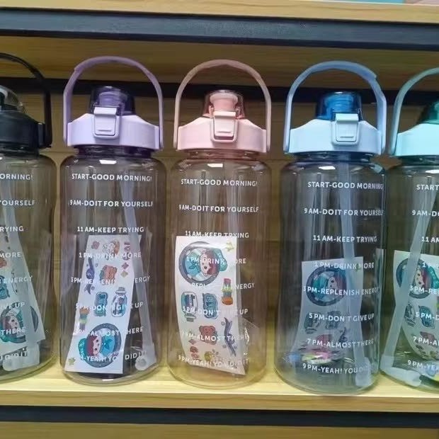 2000mlネット赤コップ超大容量水瓶耐高温スケール霧面運動大桶水筒ペットボトル