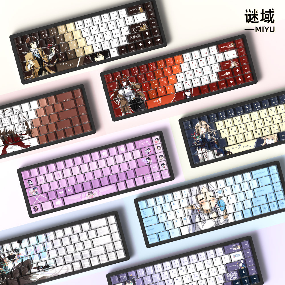 ミステリーフィールド 74キー 漫画アニメキーキャップ 二次元 厚型 オリジナルサイド刻印文字 透光PBT昇華キーキャップ