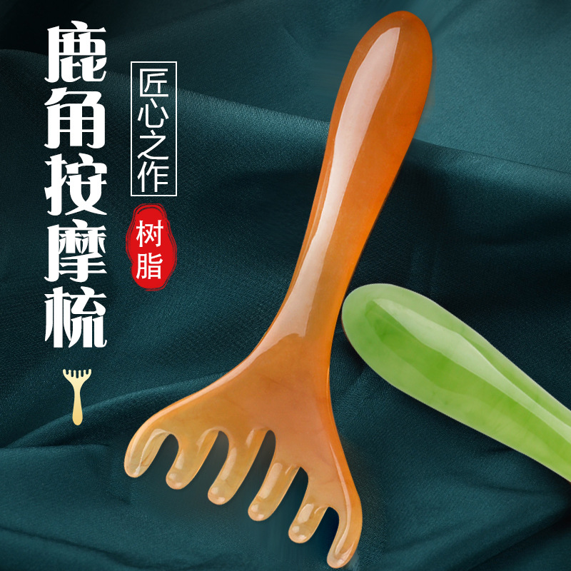 鹿角櫛 頭皮マッサージ器 爪状樹脂白檀経絡櫛 六歯頭皮掻き器 筋ほぐし頭皮ケアツール