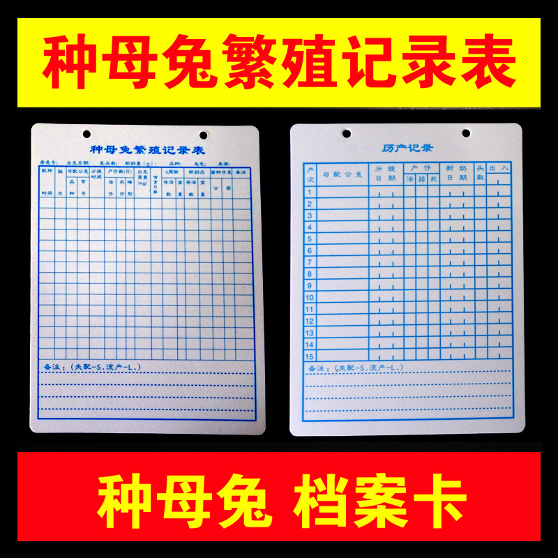種母兎繁殖記録カード種母兎記録表養兎記録カードウサギ養殖資料カード