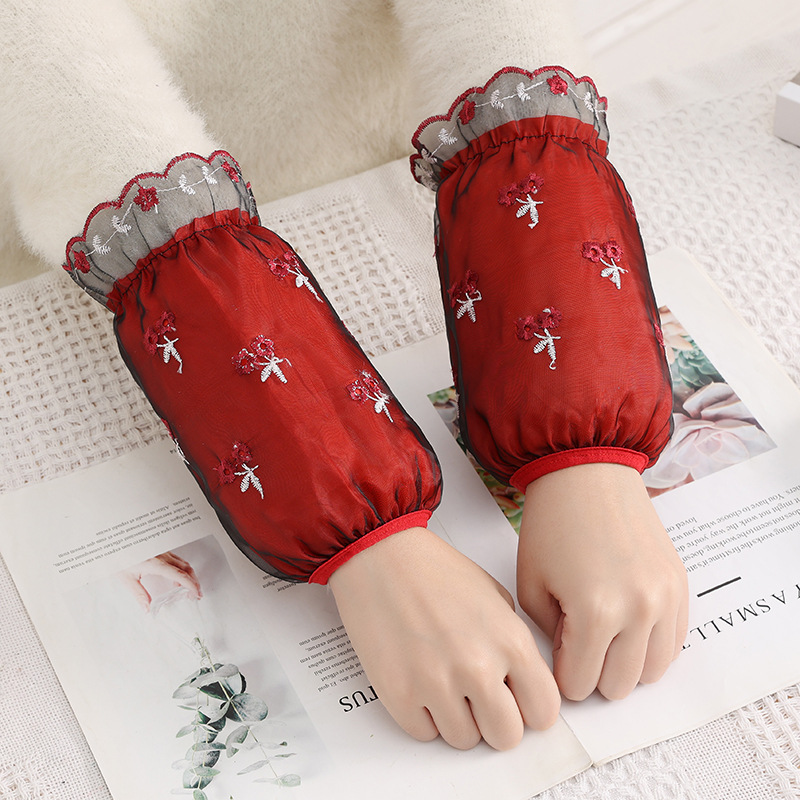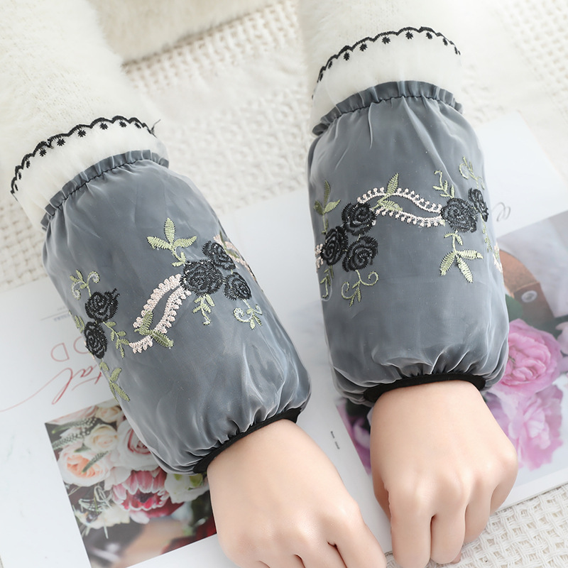 新しいファッション刺繍網糸レース袖カバー学生防汚短い袖頭秋冬レディースオフィス袖筒