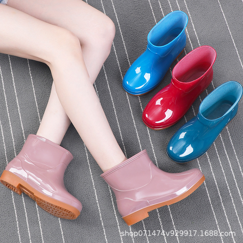 中筒レディースレインブーツ滑り止めウォーターシューズキッチンフットカバー作業靴おしゃれレディースレインブーツ室内掃除防水レディースゴム靴