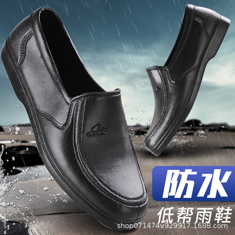 春と秋のカードの女性の低い筒の雨靴の食堂の清潔で衛生的な靴のゴム靴の車輪の木目の滑り止めの防水の雨靴