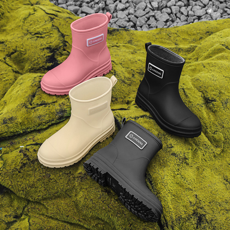 ショートブーツ黒女性雨靴キッチン滑り止めマット防水ゴム靴ファッション渉水花園靴屋外水靴