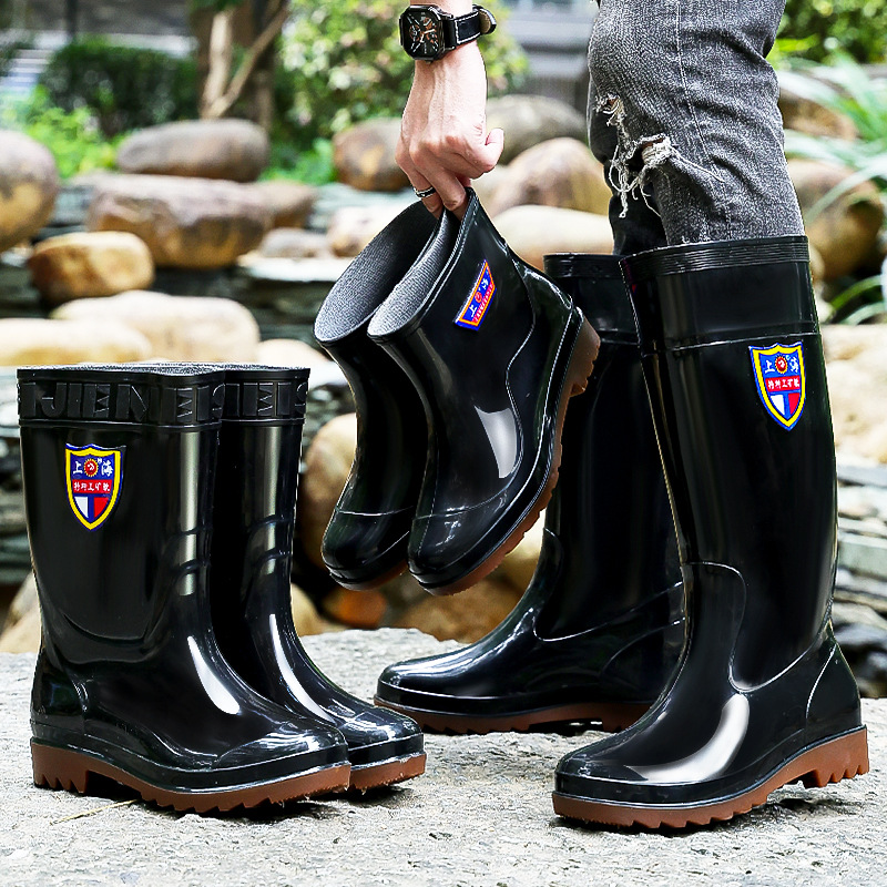 上海高校黒男雨靴滑り止め耐摩耗性男工鉱靴水産農地高位防水靴労働保護男靴