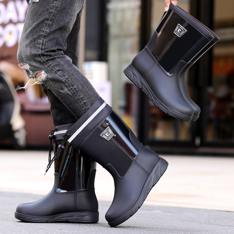 男性式雨靴中筒水靴雨靴メーカー黒ゴム靴工鉱靴キッチンゴム底防水靴雨靴