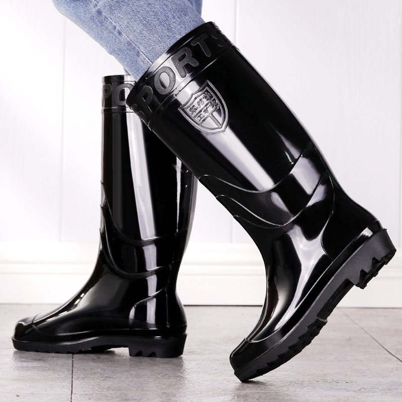 高筒特価黒黒底男雨靴高筒雨靴純黒男ゴム靴台所滑り止め水靴洗車水靴