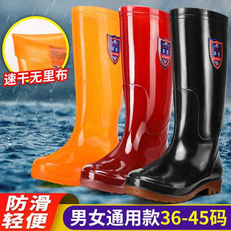 高筒男水靴長筒オックスフォード底滑り止め底ゴム靴カバー足雨靴労働保護靴雨靴料理人防水靴