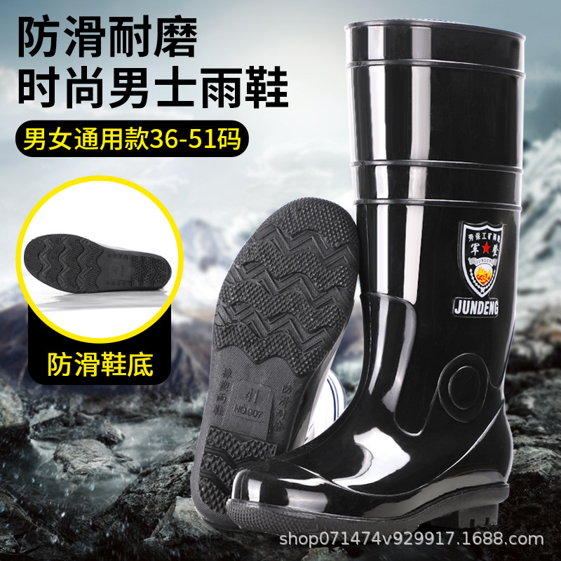 黒軍保低中高男型雨靴工事現場工業級滑り止め靴水靴台所工場雨靴