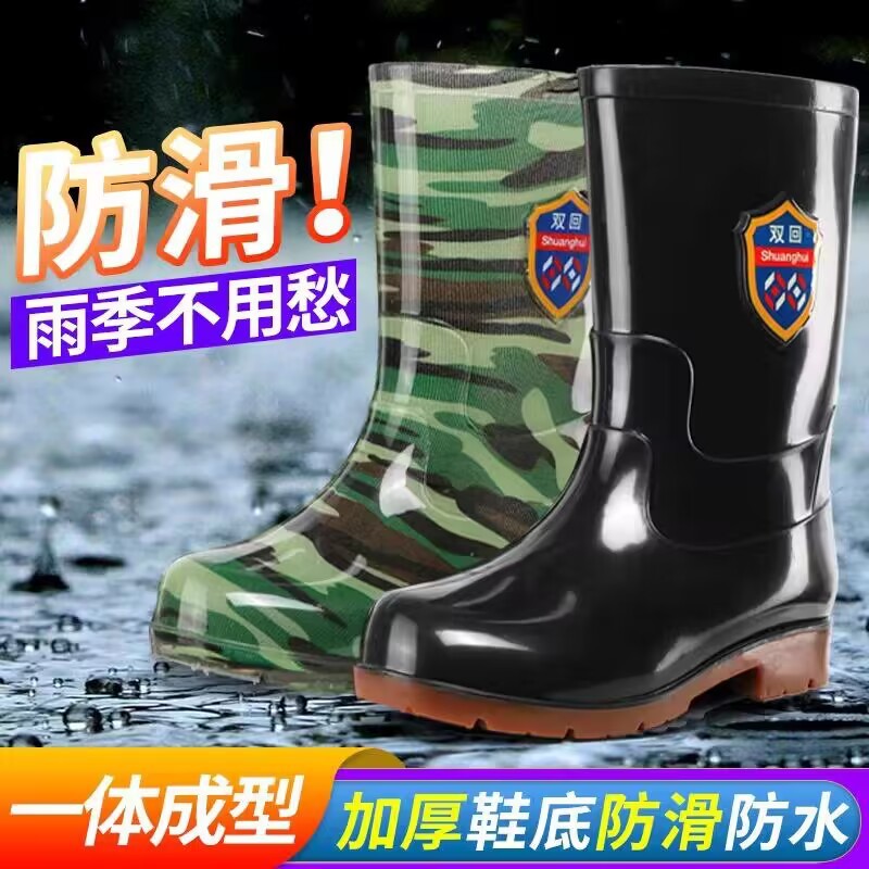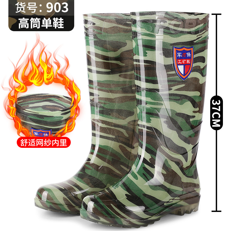 高筒迷彩雨靴中高水靴長筒雨靴迷彩布工事現場靴厨房滑り止め水靴軍保男ゴム