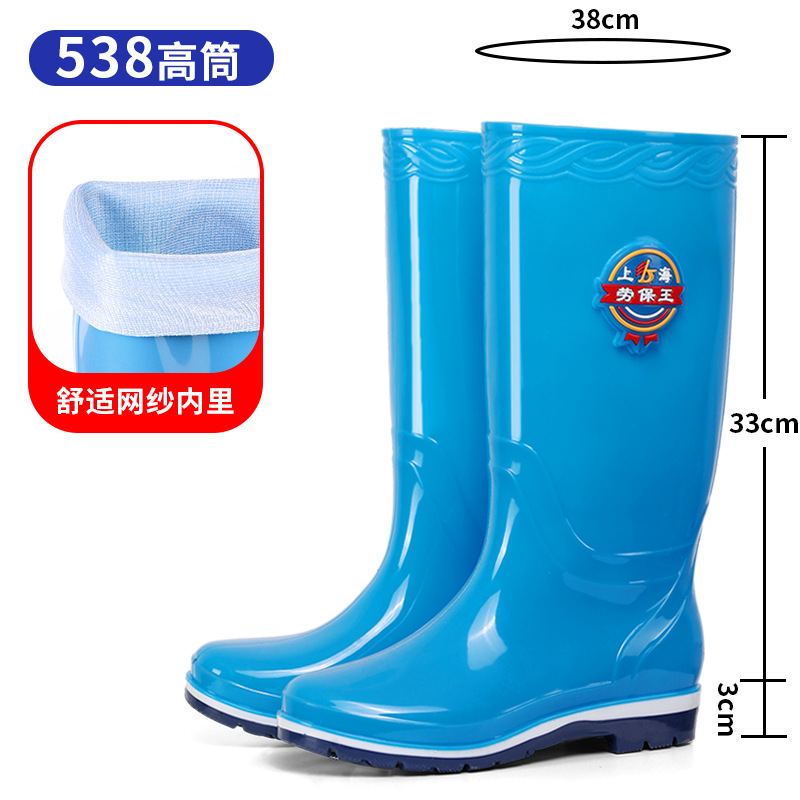 上海ブランドの高筒ファッション女性雨靴キッチン滑り止め水靴アウトドアガーデン水靴ゼリー浅緑速乾ゴム靴