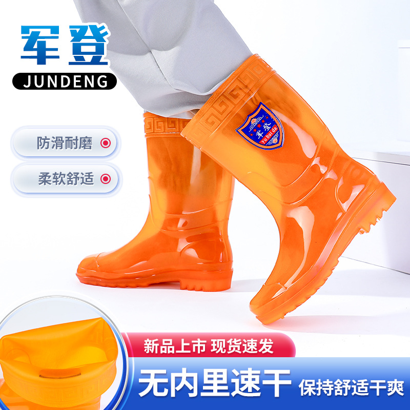 軍登水晶黄中筒男女通用雨靴速乾金下田池養魚滑り止め保温靴ゴム靴