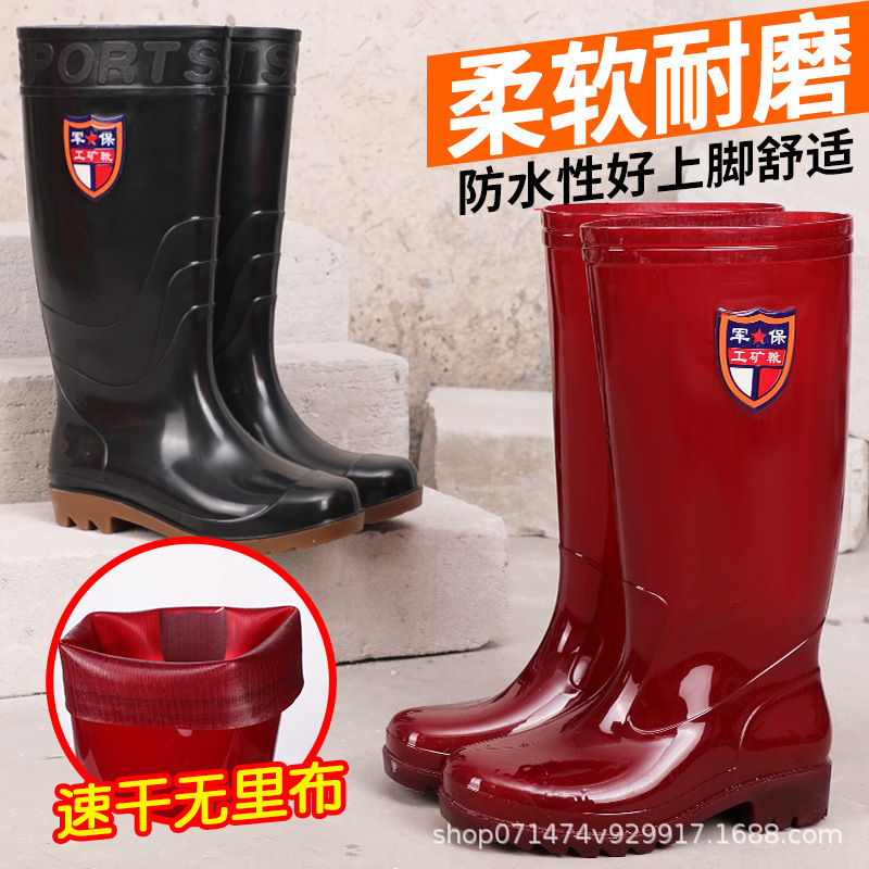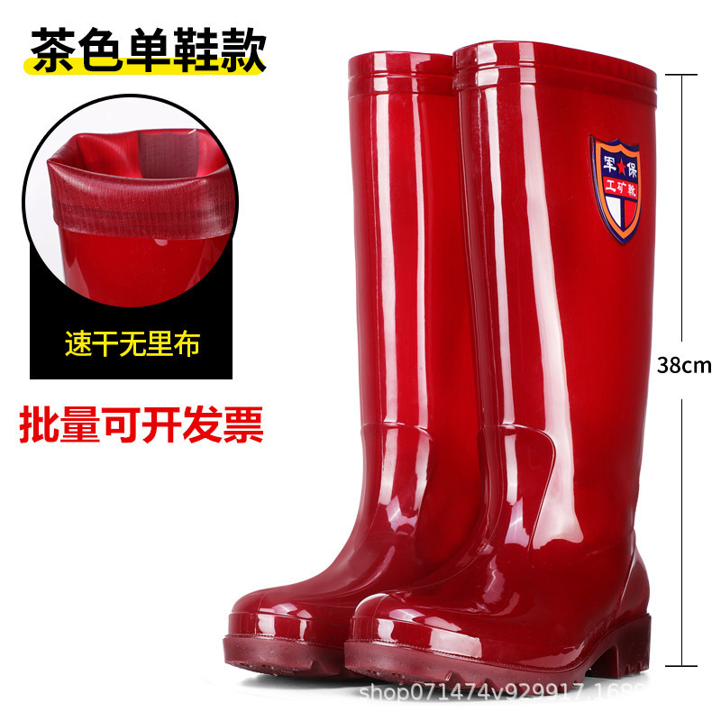 軍保茶色裏なし速乾ゴム靴高筒雨靴防水靴長筒カバー足仕事速洗水靴水靴
