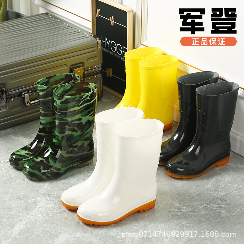 軍登黒雨靴ブーツ筒水靴長筒迷彩雨靴キッチン滑り止め黄白水靴男女通用ゴム靴