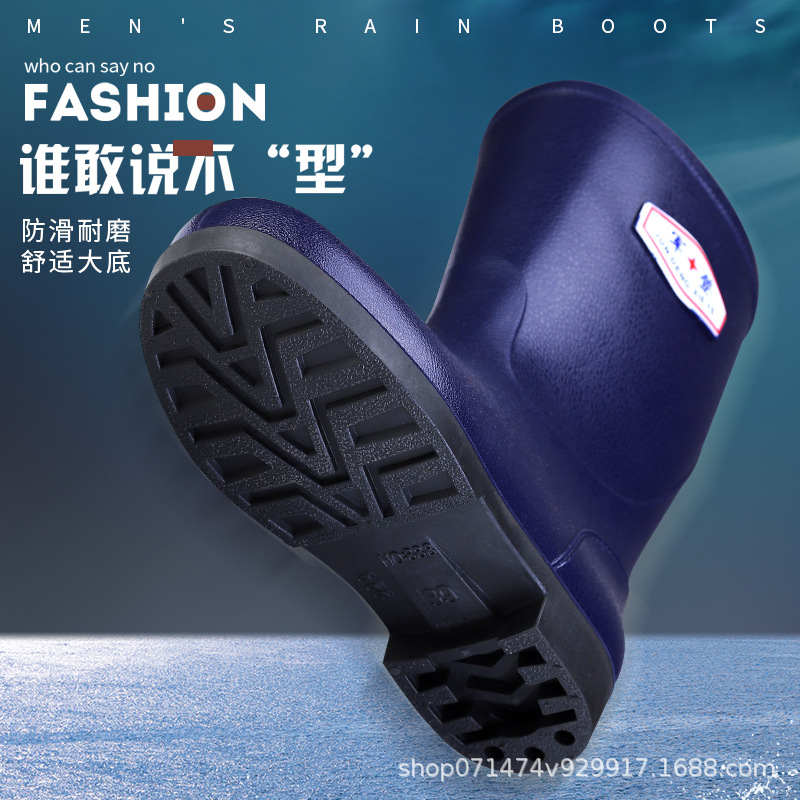 軍登ファッション男女雨靴都市中筒滑り止め渉水靴厚い底中靴防水靴男雨靴潮靴