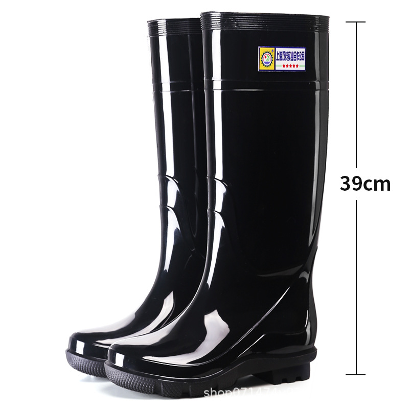 メンズ純黒厚手高筒フロスト雨靴長筒水靴キッチン防水靴耐磨耗雨靴厚い底水靴