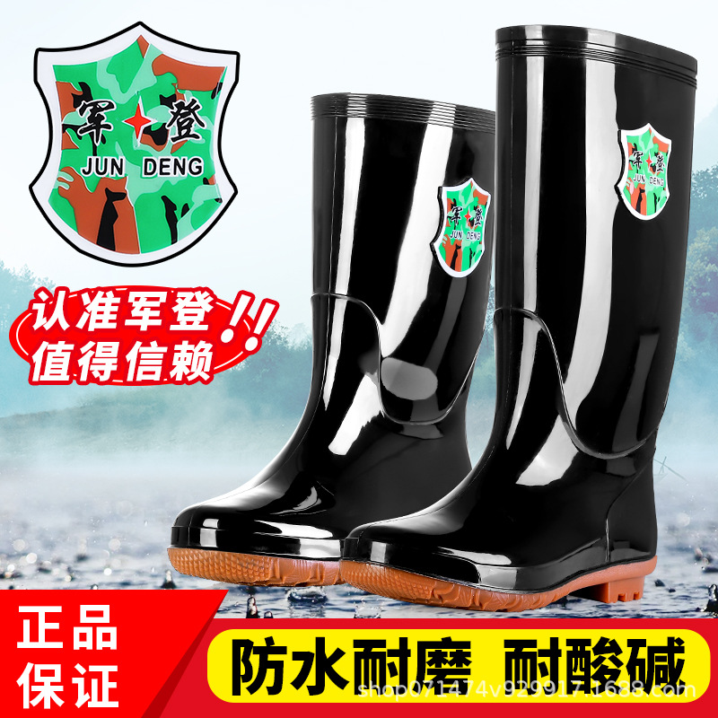 軍登茶色無内高筒ゴム靴防水靴速洗速乾水靴長筒雨靴黒足雨靴