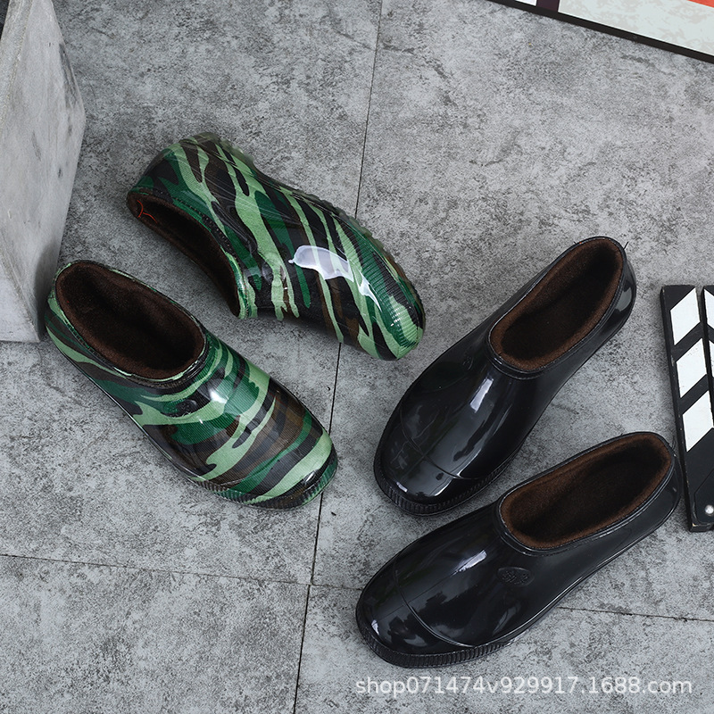 低助綿男水靴迷彩水晶底滑り止め保温雨靴カバー足ゴム靴浅口雨靴男綿靴