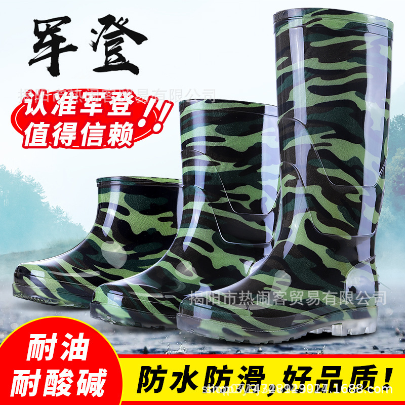 低助春秋男水靴迷彩新材料水晶底滑り止め雨靴カバー足純黒ゴム靴浅口雨靴男靴