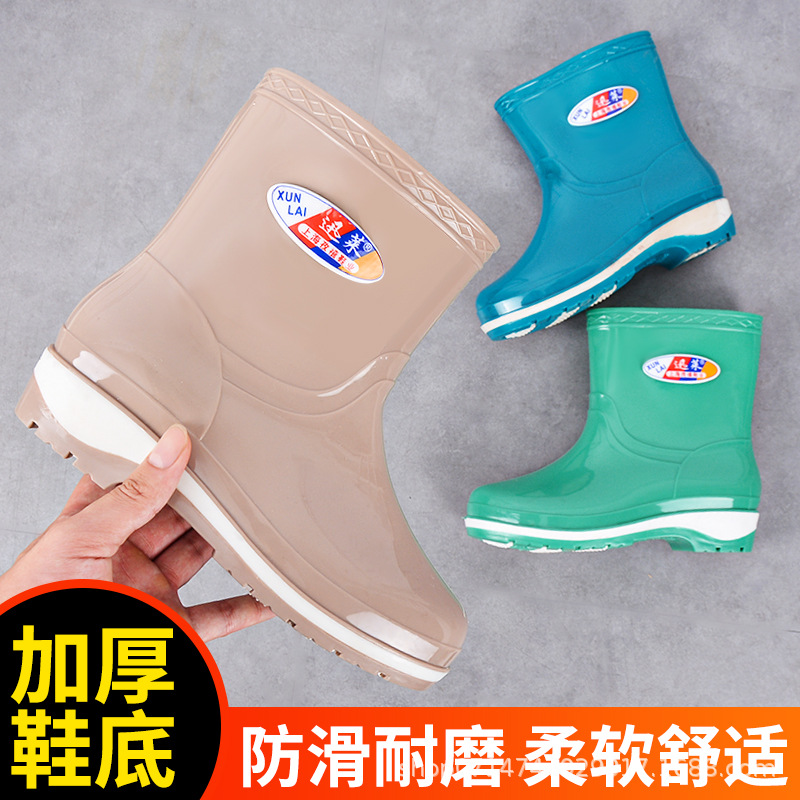 高筒女雨靴長筒雨靴牛筋底滑り止めキッチン女水靴トイレ掃除防水労働保護ゴム靴