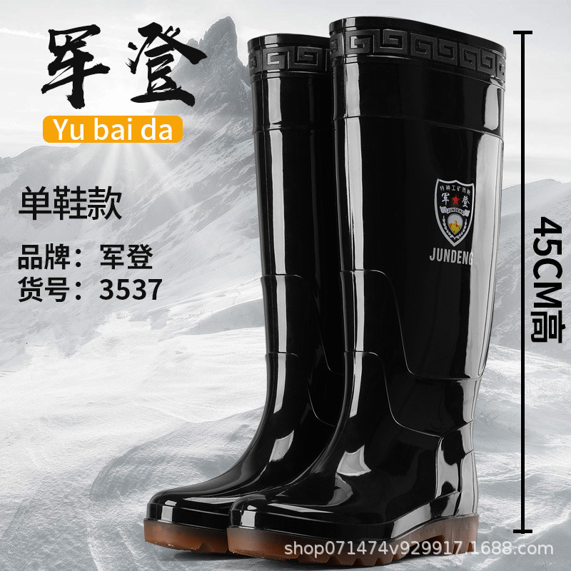 軍登高筒迷彩雨靴厚手キッチン滑り止めゴム靴長筒水写工鉱靴労働保護水靴男雨靴