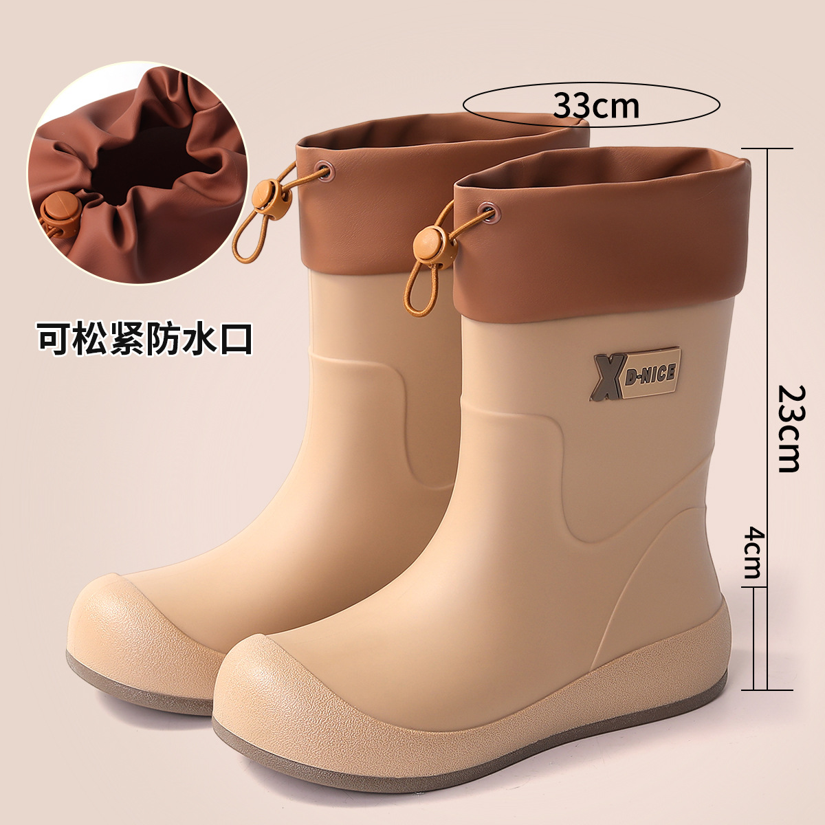 中短筒束口雨靴防水ロープ女靴アウトドアキャンプ渓辺水靴通勤ファッションゴム靴渉水靴