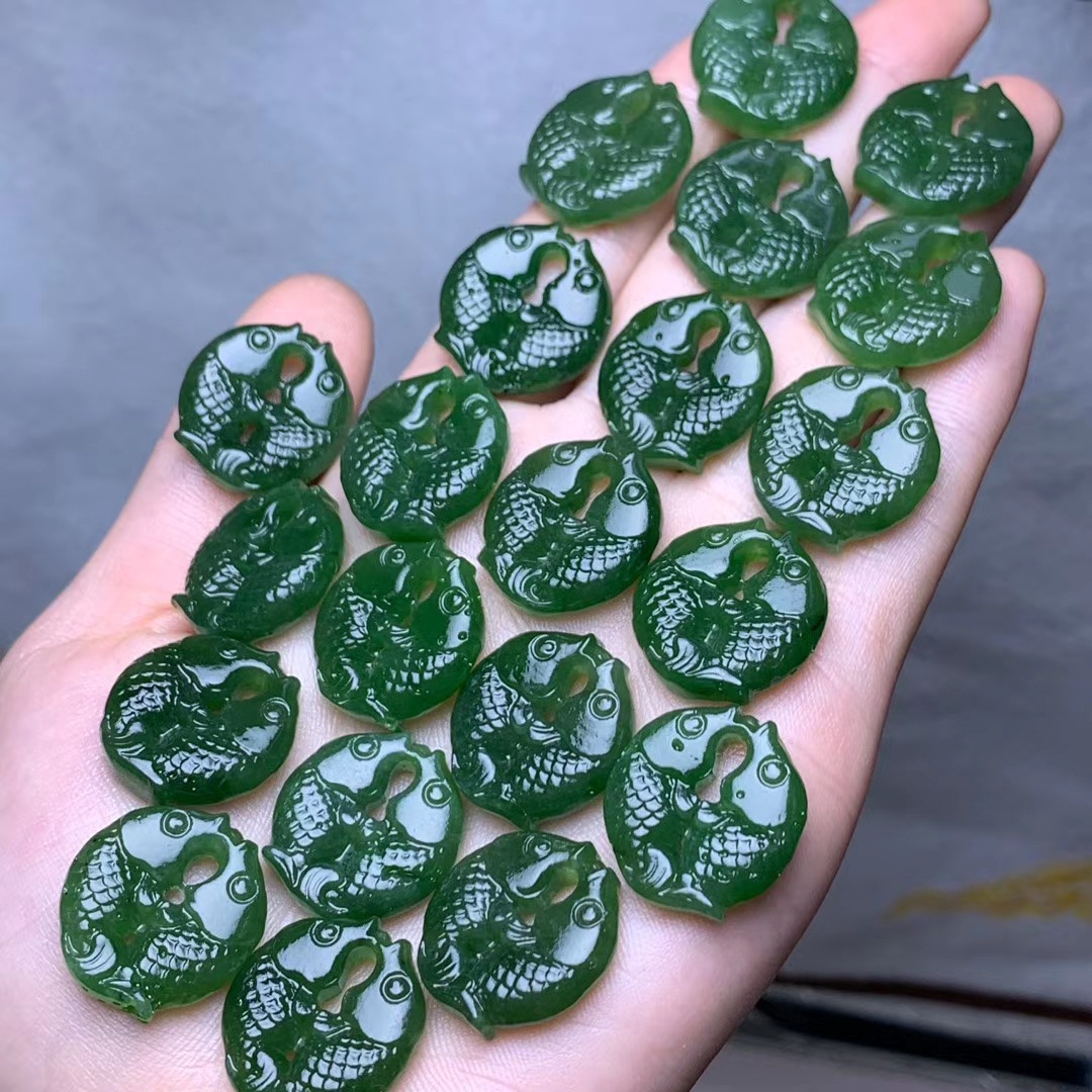 和田玉碧玉両面手彫双魚小ペンダントdiy項ペンダント玉アクセサリーアクセサリー